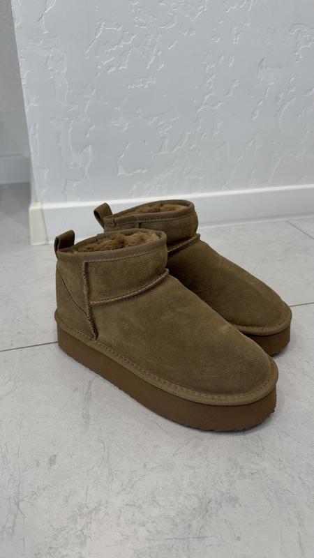Угги виконані із замші, висота підошви 3,5см. Дуже легенькі.Розмір 37 (24см).Стан ідеальний, просто не підійшов розмір, приміряла вдома.