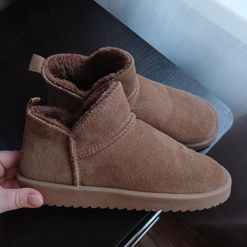 Короткие замшевые угги OYSHO подростковые 35 размер стелька 23см идеально на стопу 22см,Стан идеальный верх натуральный замша мех из середины искусственное.