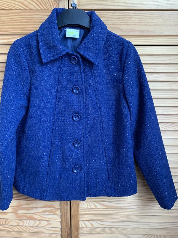 Полупальто Crazy8.. Два врезных кармана. Цвет:темно-синий с металлизированной нитью. Ткань букле. Состав: 50% полиэстер, 21% акрил,10% шерсть, 10% вискоза, 3% металлизированная нить, подкладка: 100% полиэстер. Одевали от силы пару раз. Состояние нового.