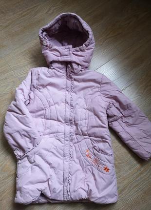 Тепле пальто на зиму до - 10С, холодну осінь. Всередині до пояса утеплене флісовою підкладкою. Стан ідеальний. Тканина верха водовідштовхуюча. Довжина 60см Рукав 43см ПОГ 33см ПОТ 40см Капюшон на блискавці, є затяжки.