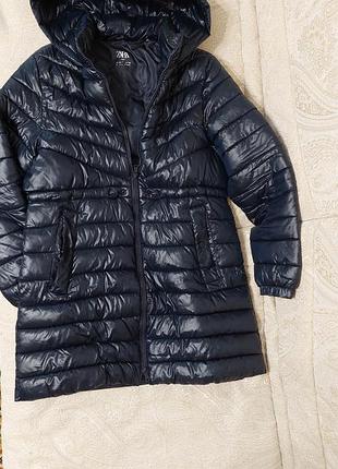Пальто демісезонне Zara в ідеальному стані. Темно-синього кольору. Високий комір, капюшон.