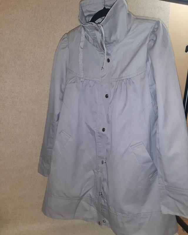 Дуже красивый! Світло-сірий тренч, гарного стану! На підкладці. Комір піднімається (стійка), блискавка і кнопки, глибокі кишені, є внутрішня кишенька! Фурнітура якісна! Розмір EU 36, чудово сядить на наш 44 Виглядає дуже класно! Рукав 63 см Плечі 34 см Довжина 81 см ПОГ 45 Талія і низ – вільно