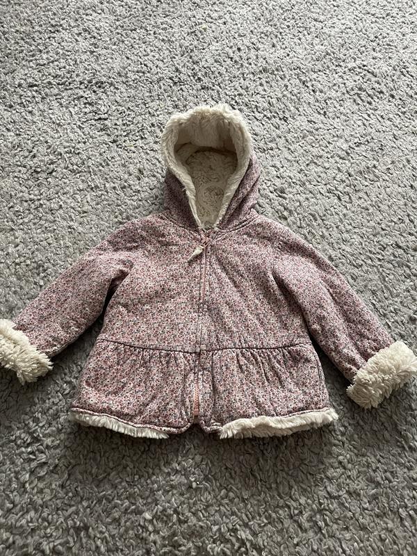 Гарне зручне пальтішко для дівчинки, з м’якеньким хутром в середині, рукавчик можна носити підчачаним і ні, що дає змогу носити 2 сезона Розмір вказаний 104, ми носили з 2х років, дивіться заміри