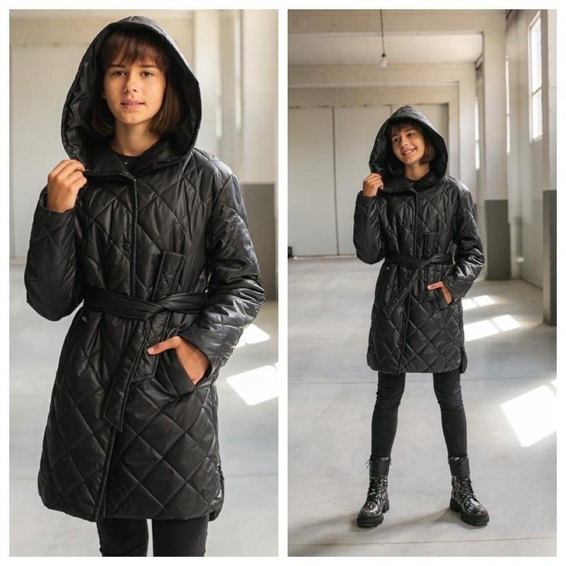 арт 629 🦩Пальто-стьогане демі на кнопках знизу побоках блискавки з капюшоном та кишенями під поясок ГАРНА ЯКІСТЬ! Ціна 990грн розмір/🦩довжина/пог/рукав 146/🦩79/45/51-2шт 152/🦩82/46/53-1шт