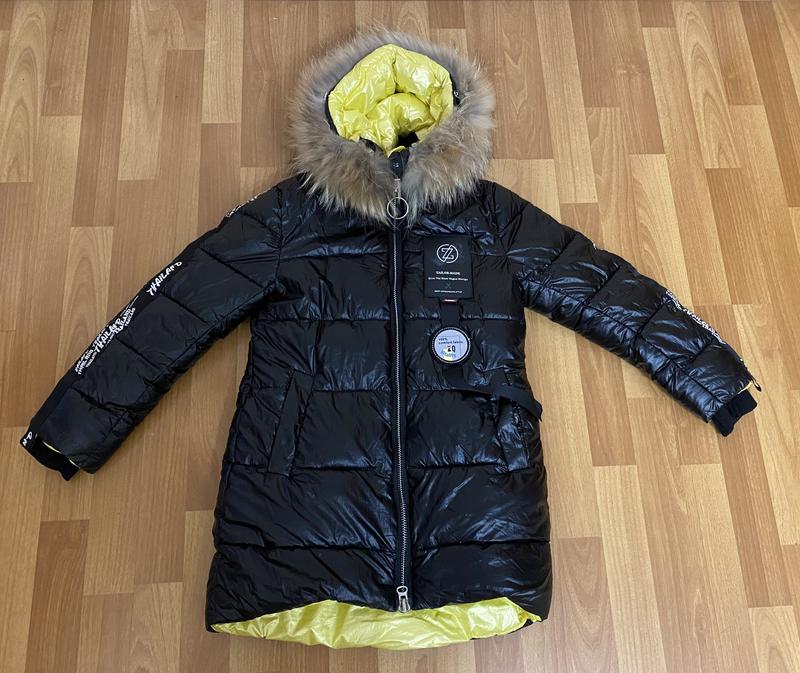 Класне пальто. р 128 В ідеальному стані. Усередині флісова підкладка. На комірі натуральне хутро відстібається. Дуже стильна та тепла модель. Довжина по спинці-69 Рукав від плеча-50 Плечо-10 Довжина перед -62 Ширина-44 Стегна-46