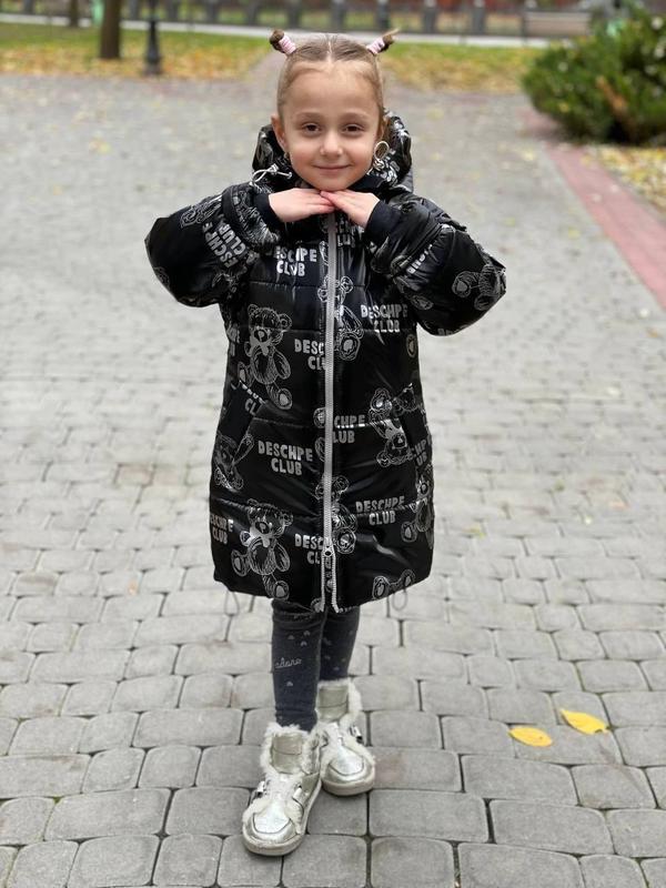 Подовжена зимова курточка на флісі Зріст: 98 104 110 116 см Колір: рожевий, срібло, чорний, оливка : 1700 грн Код 100 Накладенний платіж по предоплаті 200 грн Матеріал: поліестер 100% Підкладка: фліс Наповнювач: синтепух щільністю 300г/м2, Яскрава принтова подовжена курточка. Зручний капюшон із додатковою фіксацією. Дві прорізні кармани з боків. Манжети для додаткового захисту від холоду. Застібка на молнию з вітрозахисною планкою. Низ виробу фіксується за допомогою куліси, регулюючи ширину і силует. Температурний режим від -5 до -25 °С.