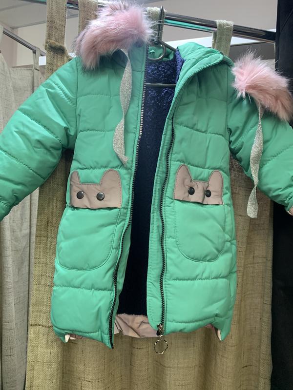 Плащівка мятного кольоре.Утеплювач сінтепон і травка.Штучне хутро на капішоні.Світловідбиваючі вставки на карманах і рукавах