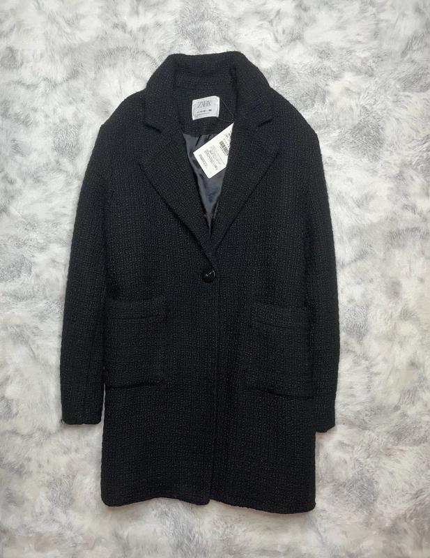 Пальто из рельефной ткани с длинными рукавами и воротником с лацканами. Застегивается на пуговицу. Передние накладные карманы. Небольшой слой наполнителя Подкладочная ткань полиестер 🏷Zara 🔸8 лет Длина 67. ПОГ 42. Рукав 46