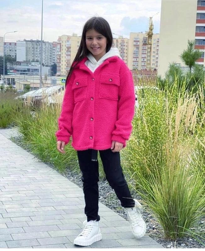 🆒В НАЯВНОСТІ 🆒 Кардиган - тканина по типу каракулю штучного. Без підкладки , з середини приємна на дотик, не колюча , має маленький начос. Є накладні робочі кармани. Колір - малина Ціна 570 грн Розміри: 104 рр - 3 шт 110 рр - 2 шт 116 рр - 3 шт Заміри 104-Довжина 41см Рукав від коміра 46 см 110-Довжина 44 см Рукав від коміра 48 см