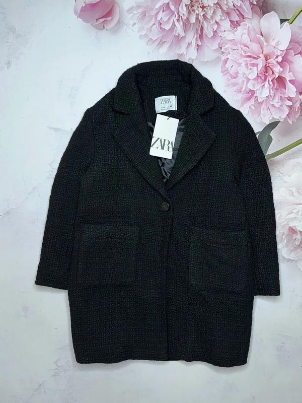 Пальто из рельефной ткани с длинными рукавами и воротником с лацканами. Застегивается на пуговицу. Передние накладные карманы. Небольшой слой наполнителя Подкладочная ткань полиестер 🏷Zara 🔸8 лет Длина 67. ПОГ 42. Рукав 46