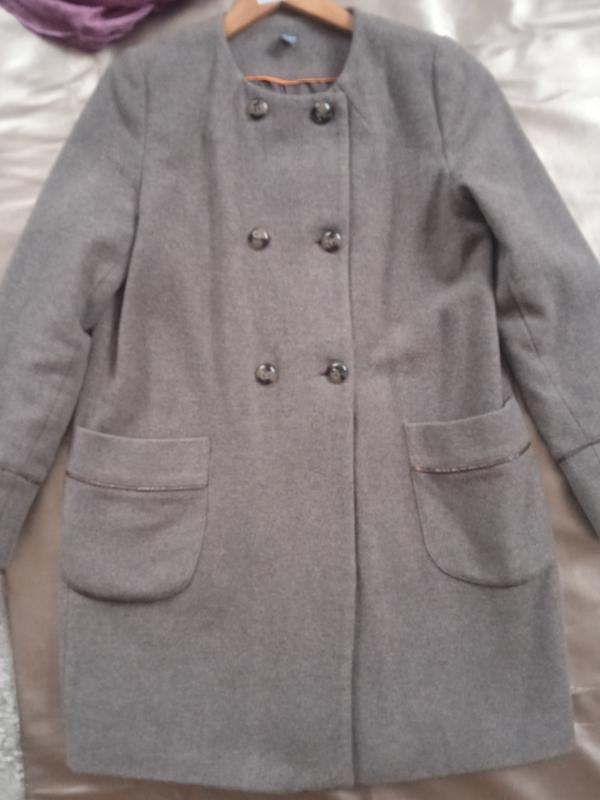 пальто свободного кроя, очень стильно смотрит. цвет приятный, теплый как капучино. длина пальто 82 см.