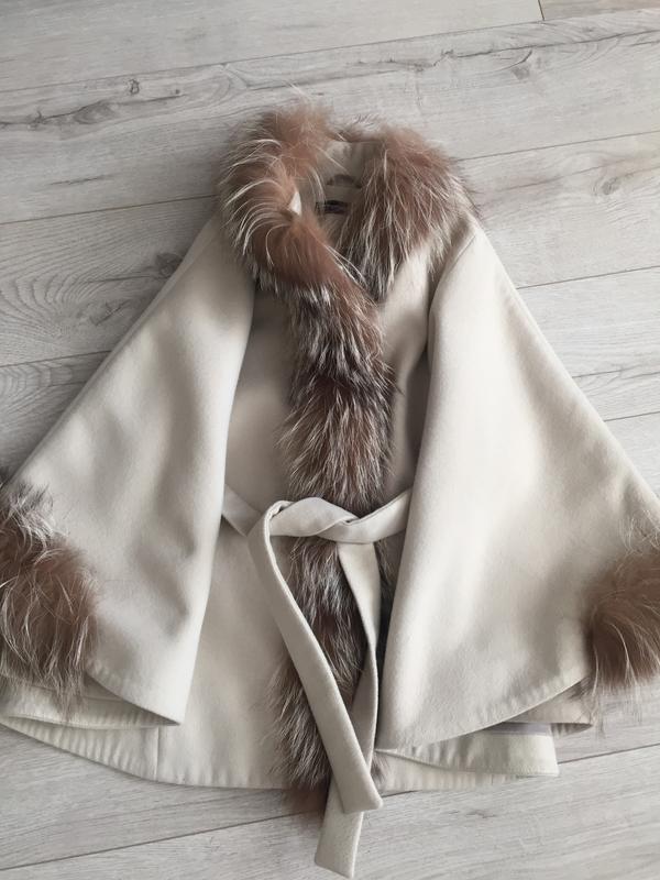 Дизайнерское пончо на принцессе. Кашемир с мехом чернобурки