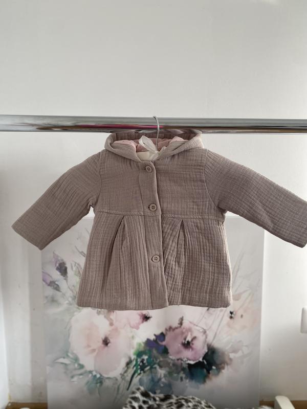 Базове пальто з ніжного хлопкового мусліну від #Next 😊 Вік 9 - 12 місяців Заміри: Плечі 23 см Рукав 26 см Довжина 33 см Утеплене