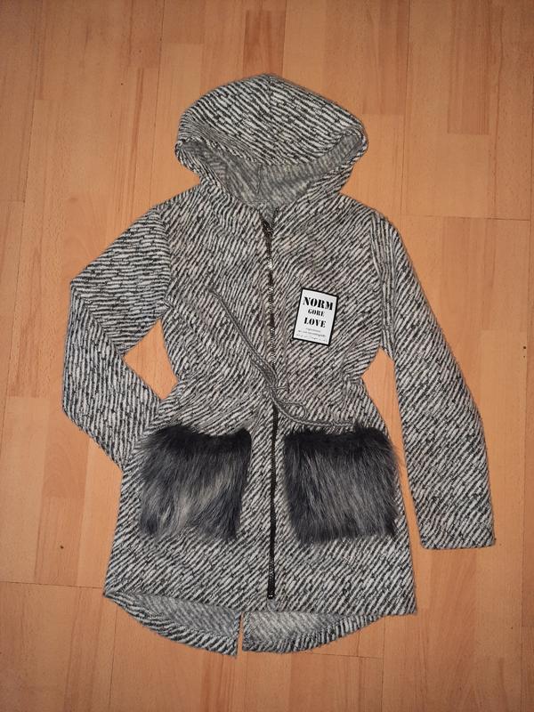 Серое демисезонное пальто на девочку 8-10 лет. Пог 42см длина 73см, рукав 51см.