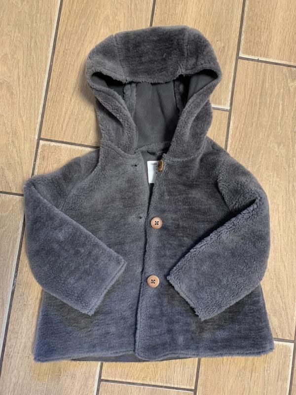 Пальто на девочку. Без утепления. Может быть как рубашка с капишоном. Хорошего серо-голубого цвета с деревянными пуговицами