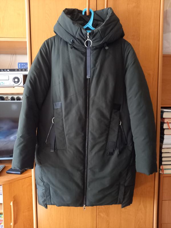 Теплое, легкое, удобное пальто зимнее. Размер указан XL, но изделие маломерит, идет на 46-48 (европейский 42-44) или подростковый 158-164. Цвет темно-зеленый. Надежная фурнитура, двусторонняя молния. Наполнитель – легкий и теплый, на бирке указано – 100% полиэстер. Объемный удобный капюшон. Б/у, состояние отличное, 1300 грн. Замеры по запросу.