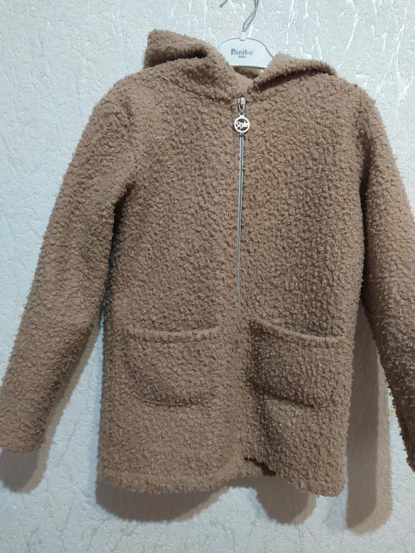 Стильное пальто для девочки "барашек". На этикетке указан рост- 122, длина - 55см, рукав от плеча - 43,5см. С дополнительных вопросов, пишите.