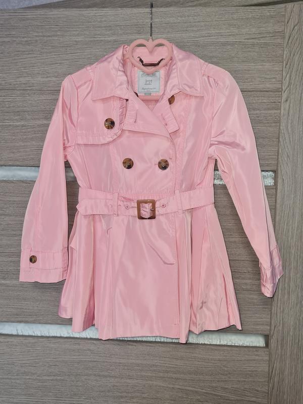 Елегантний плащик на дівчинку, виглядає дуже стильово! Зроблено в Іспанії. Застібається на гудзики, має пасок, 2 кармашки. Заміри: * довжина - 52 см * рукав від шва - 40 см * ширина - 33 см
