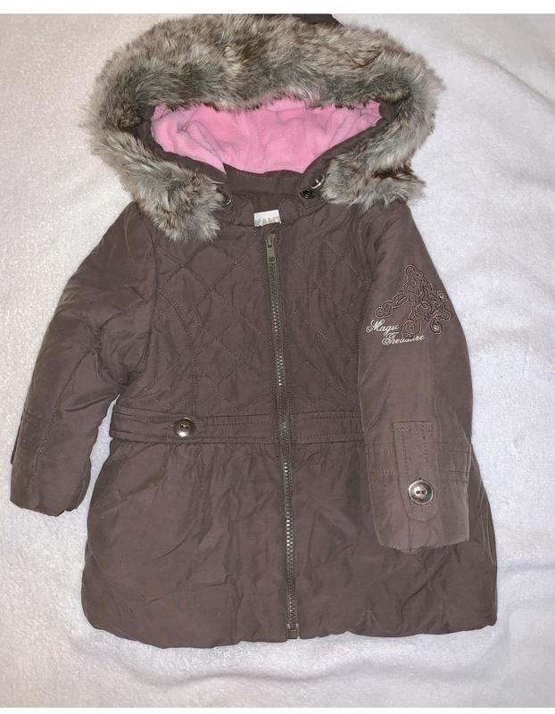 Стильное пальто- парка. Мех отстегивается, капюшон отстегивается. Подкладка баечка и тонкий слой синтепона. Сезон весна - осень, холодной овцы. В отличном состоянии. Рост указан 86( 18 месяцев), можно с 8 до 24 мес. Точные замеры длинна- 44, ширина- 33, длинна рукава- 30.- цена 400 грн