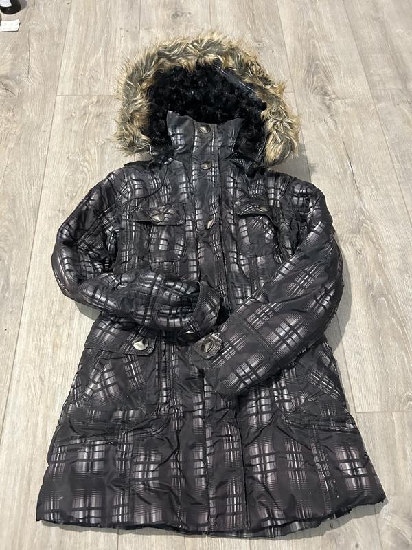 Распродажа! Зимнее пальто рост 146 см по бирцву можно как Деми Капюшон и мех съемный. Пасок в комплекті Длина от капюшона- 77см Полуобхват груди-45 до 50 см тянется Полу обхват бедер- 50см Рукав от горлишка - 66см, от плеча -56см