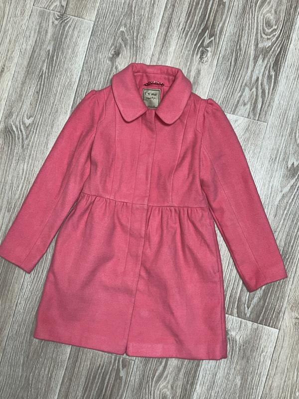 Пальто на подкладке полиестер. Сезон осень-весна. Без наполнителя. 2 боковых кармана Цвет как на фото Застёгивается на пуговки Состояние идеал 7-8 лет Next Длина 68(29). ПОГ 38. Рукав 48. Плечи 30