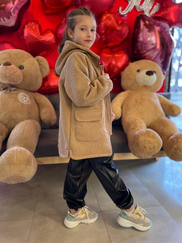 Демисезонное пальто для девочки «АННИ» Рост: 122 128 134 140 Цвет: мокко Материал: верх - мех «ТЕДИ» Подкладка: Плащевая ткань "Richard" Наполнитель: Синтепух плотностью 100г/м2 Очень стильное пальто на девочку из меха «Теди» свободного кроя с капюшоном. Легкий утеплитель из синтепуха обеспечивает защиту от ветра и холода по бокам накладные карманы. Застежка куртки на молнию с ветрозащитной планкой изнутри.