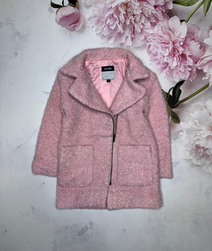 Шерстяное пальтишко на подкладке полиестер. Ткань имеет объемную структуру. Цвет розовый. 6 лет Kiabi(France) Длина 57. ПОГ 37. Рукав 39/49.