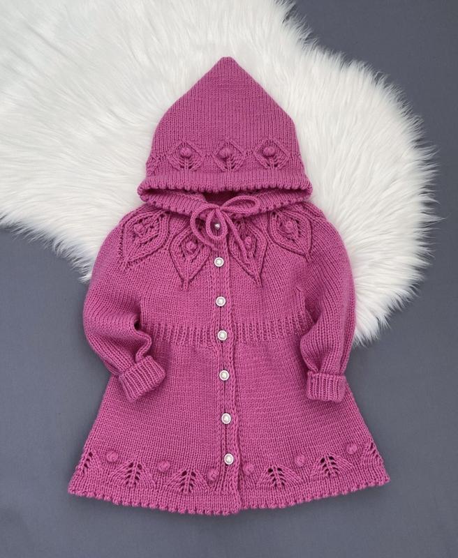 Дуже гарний кардиган ручної роботи. Пов'язаний із напіввовняної пряжі. Розмірний ряд від 0-3 років. Великий вибір кольорів. Під замовлення.