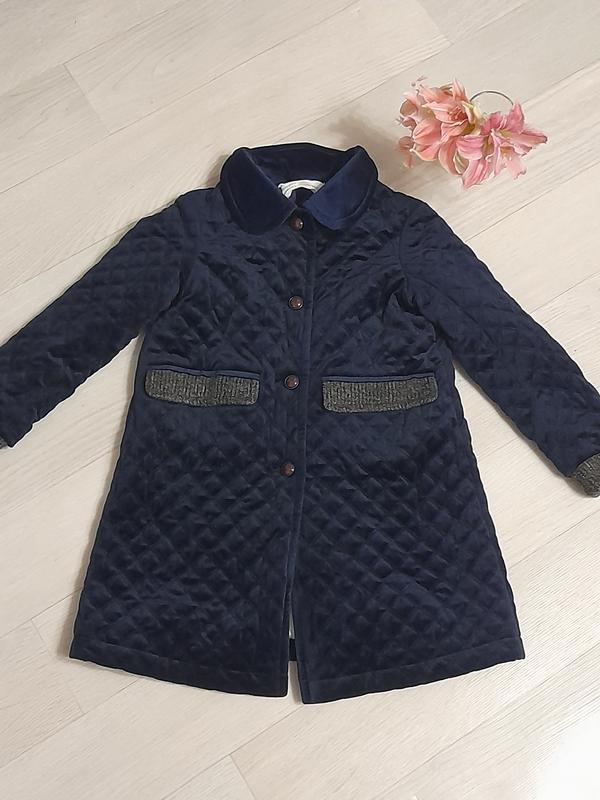 Пальто для дівчинки. Склад 50% віскоза, 50% поліестер. Колір темно синій. Матеріал м'який, як "плюшовий".
