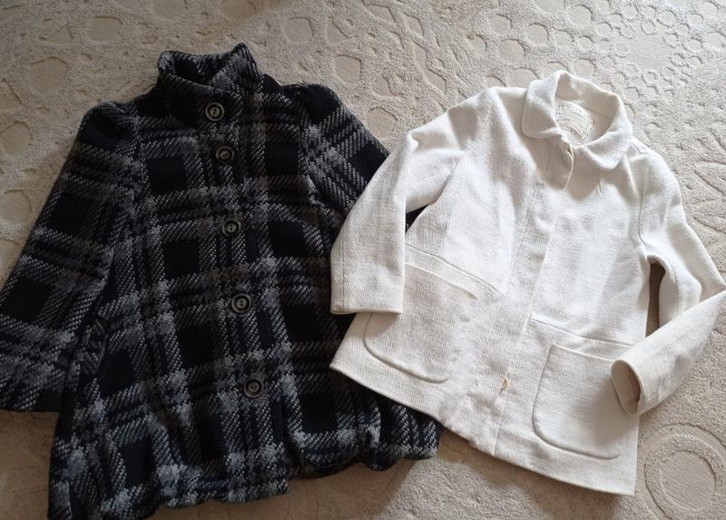 Стан ідеальний. Підійде на 122-134 ріст. Довжина білого-55 см. Рукав-46 см. ПОГ-40 см. Пальто в клетку: довжина-60 см. Рукав-43 см. ПОГ-37 см. Одне за 400.За всі 700 грн. Кепка у подарунок.