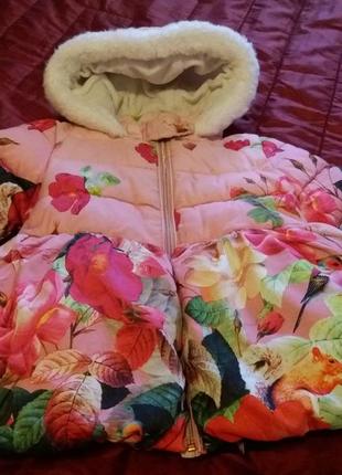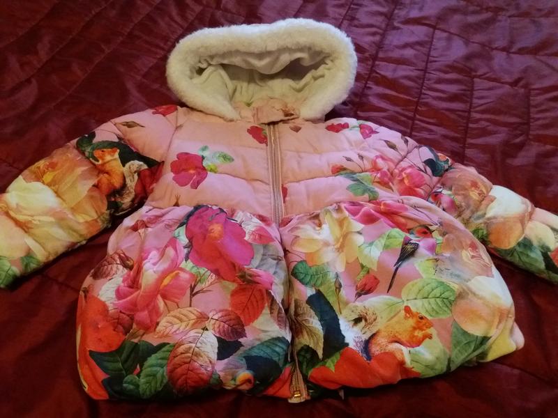 Красивая теплая куртка - пальто Ted Baker. Модель с пышной юбочкой. Модель с теплым капюшоном и опушкой сверху. Внутри очень мягкий синтепон. Приятная мягкая флисовая подкладка. Застежка - молния, возле горлышка - кнопка. Размер указан 4-5 лет. Замеры ; Длина по спинке 47 см, ПОГ - 34 см , ПОТ 35 см, Плечо 6 см + рукав 34 см. Ted Baker — британская компания, занимающаяся изготовлением и продажей модной одежды и аксессуаров. Известна тем, что завоевала популярность не с помощью рекламы, а благодаря устным рекомендациям своих покупателей. Продукция от Ted Baker относится к товарам высокой ценовой категории. Однако этот бренд является одним из самых необычных в мире. Вещи от Ted Baker выделяются своей красочной палитрой.