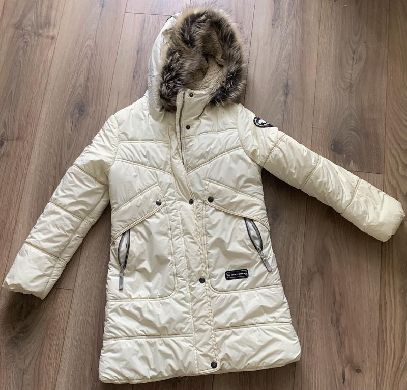 Молочное зимнее детское пальто le-company (lenne) 146см со съемным мехом