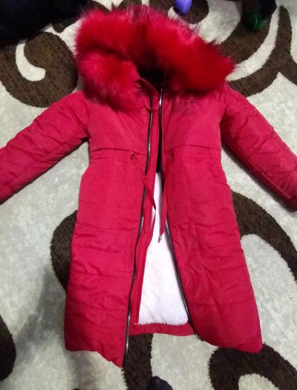 пальто-пуховик на дівчинку червоного кольору мех искуствений на зріст 165