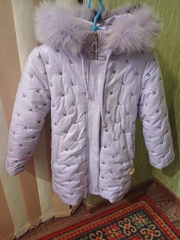 Теплое, шикарное зимнее пальто с принтом букв, не промокаемое потому что имеет материал типа экокожа. Очень красиво смотреться на ребенке, у карманчика милая эдинорожка с блестками. Для девочки ростом 116-122 см. Рукав длина от плеча 45, длина пальто по спинке - 64 см. Впитываемую выглядит лучше чем на фото!!!