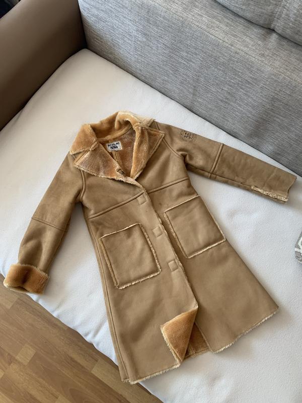 Детское пальто на меху (искусственный мех) для девочки размер 122 - 134 на рост. длина пальто 73 сантиметра ширина по спинке 38 сантиметров длина рукава 51 сантиметров длина плеча 8 сантиметров отличное состояние