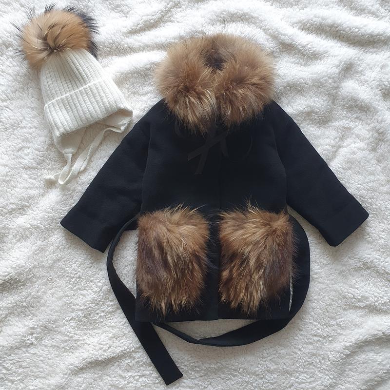 Детское пальто с енотом и шапка с енотом (1-3 лет)