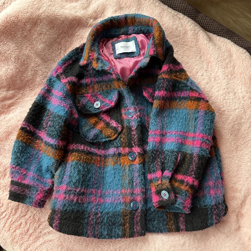 Укороченное пальто для девочки, фирмы Reserved, в отличном состоянии. Подойдет на весну-осень, достаточно теплое и яркое. Подойдет на рост от 122 до 128 см.