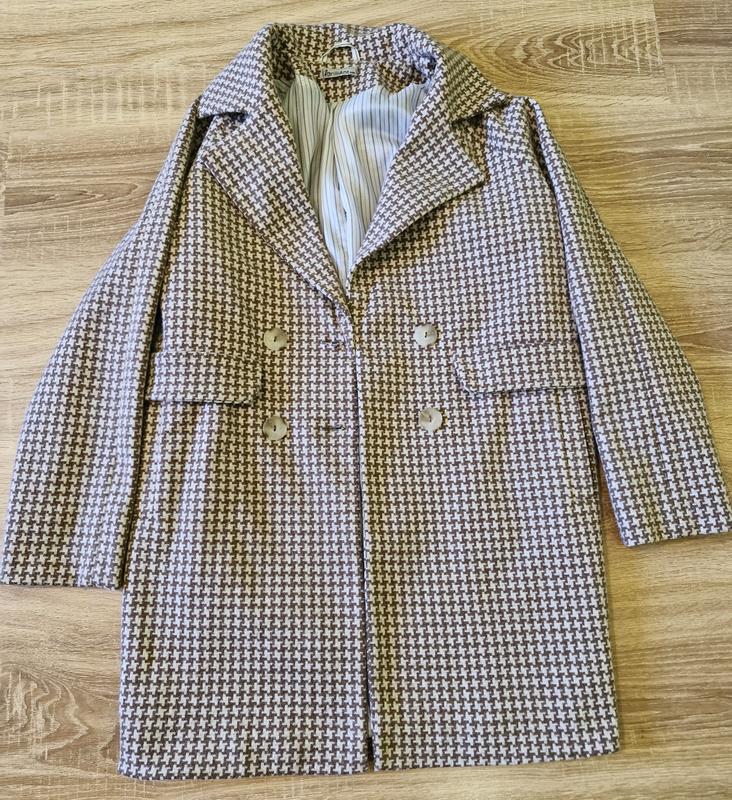 Пальто светло-коричневое новое.Бренд Brilliant.Размер 146.Материал шерсть 65%.Довж 77 см, шир 48.Рукав реглан, длиж 66 см.