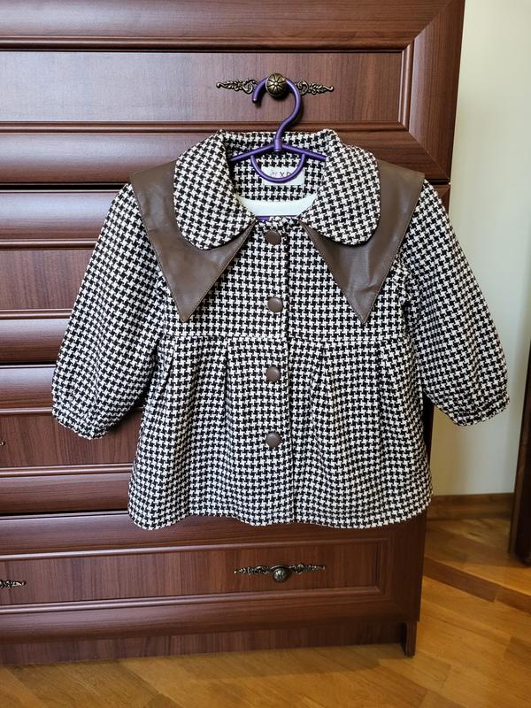 Предлагаю теплое деми пальто для девочки. Новое, без бирки. Выполнено в классическом стиле "гусиная лапка" с добавлением стильных коричневых кожзамных вставок на вороте. На велюровом подкладе. Пальто имеет: Длинные рукава Большие пуговицы для удобства застегивания Объемный воротник со вставками, что добавляет элегантности Пышный крой для комфорта движений Отличный выбор для осени или весны. Размер указанный 110. Можна на 104. Заміри на фото.