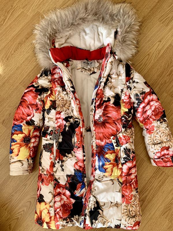 Пальто зимове KIKO, розм.10. Має капюшон , який знімається , кишені, ремінь. Довж.76; полуобхват 40; плечі 36; рукав 54 см.