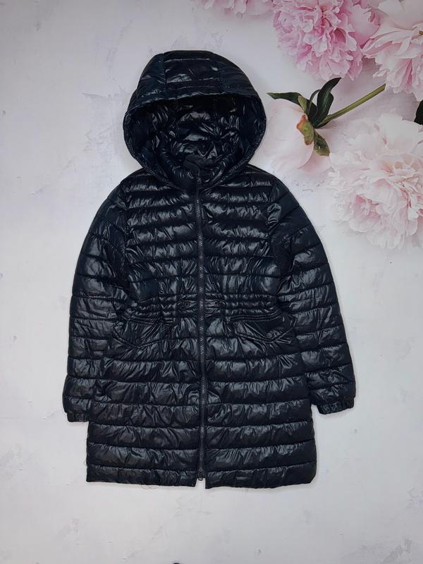 Деми куртка-пальто, стеганная модель. Цвет темно-синий. Есть 2 кармана, утяжка в талии, высокий ворот. Подкладка нейлон. 🏷️Zara 10 лет/140 Длина 69. Пог 39. Рукав 52.