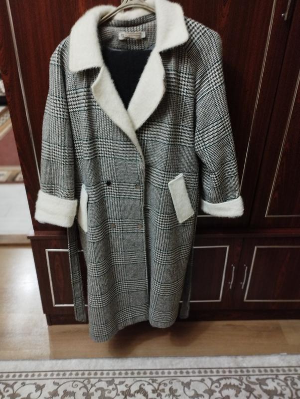 Комфортное красивое классическое пальто в клетку.качественный пошив, теплое, в составе шерсть. осень, теплая зима, весна. украшена на рукавах, воротник и карманы альпакой бело- молочного цвета. Любимая вещь, но стало маленькое. Размер 48-50. Предоставят при необходимости замеры или другую дополнительную информацию..