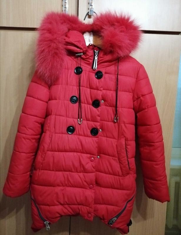 Детское зимнее, тёплое пальто. Рост 140 см. Рукава на манжете, карманы с змейкой. Длина пальто спереди 64см, сзади 70, рукав по внутреннему шву 42 см. Опушка на капюшоне снимается. В очень хорошем состоянии.