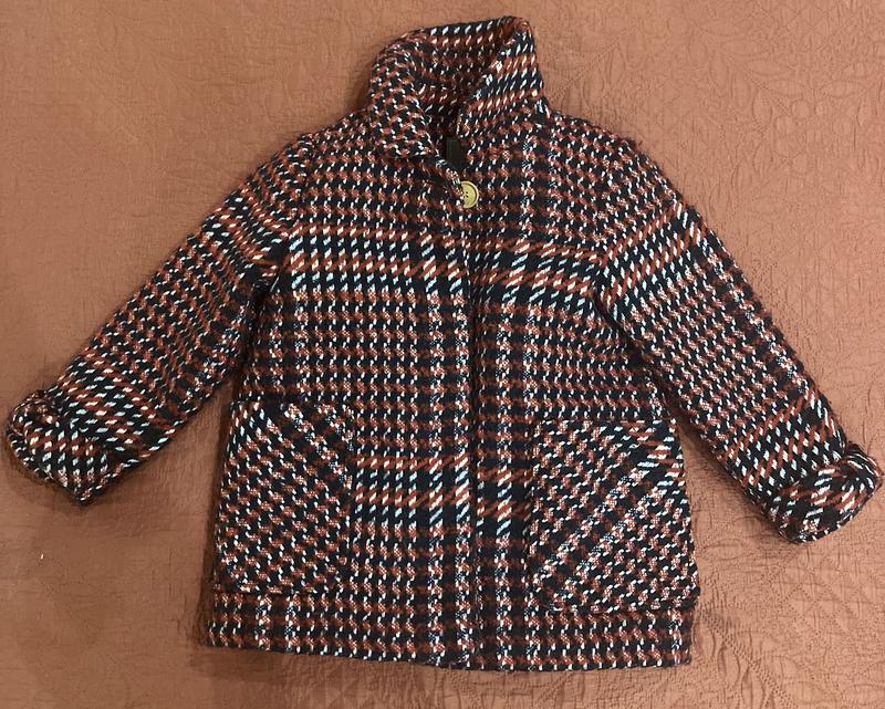 Гарне пальтішко для модниці, всередині утеплене. У прекрасному стані, без дефектів. Заміри: рукав від плеча-36 см; Ширина-36 см; Довжина-47 см.