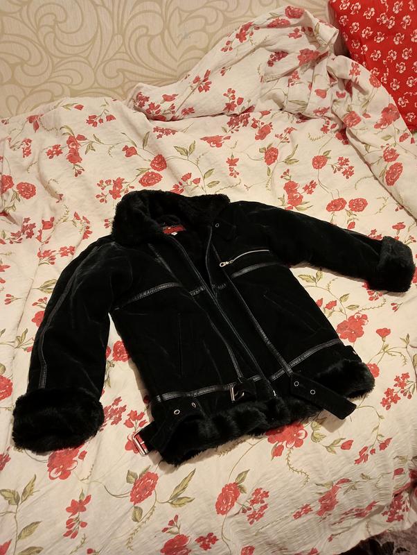 Очень стильная и теплая дубленка. Замеры есть в карусели фото. Незначительный недостаток на последнем фото, который не заметен в носке. Капюшона нет.