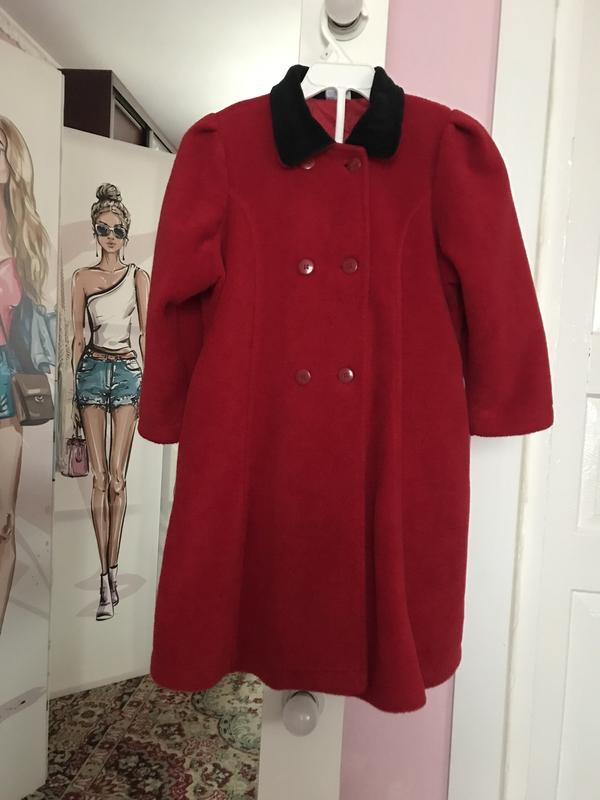 Красивое пальтошко деми для девочки в хорошем состоянии. Легкий, красивый цвет спелые вишни, без утеплителя. На рост 104см. Спинка - 28см, длина по спинке - 68см, ширина - под рукавами 43см, в талии 38см, книзу трапеция, рукав 40см.
