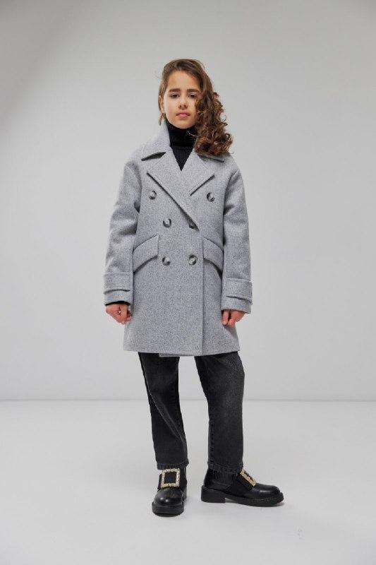 Стильное пальто для девочки. широкие модные лацканы, оверсайз фасон, украшенная пуговицами Ткань пальтовая, подкладка нейлон Р.р122-140 Длж/укав/пог 122/66/44/40 128/68/45/41 134/70/46/42 140/72/47/44 +-2см