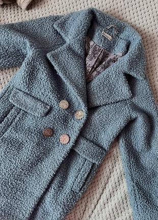 Детское пальто для девочки/весна/голубой цвет/курявый/на пуговицах