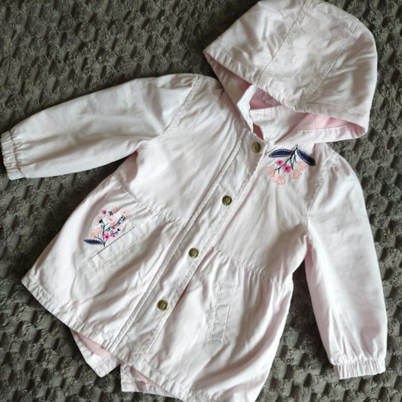 Пальто на девочку в идеальном состоянии, нежно розового цвета на флисе. Рост 92 см. Застежка на молнии и кнопки, рукава манжет на резинке, пояс тоже собран резинкой, есть карманы, зад плащика удлиненный.