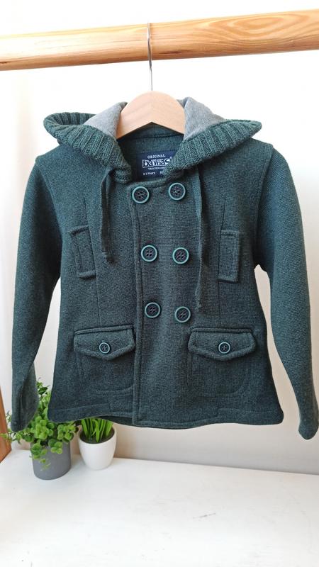 Предлагаю стильную вязаную вещь для вашей маленькой модницы! Это пальто-жакет от Baynas, размер 2-3 года (на рост до 98 см), темно-зеленый цвет, с капюшоном и уютной серой подкладкой. Две ряда крупных пуговиц добавляют ему крутой вид, а карманы – практичности. Легкое, теплое, идеально для осенней прохлады или весенних дней. Почему стоит взять? Сделано из мягкой ткани, которая не царапает кожу. Универсальный дизайн – подходит к любой одежде. Отличное состояние, почти не носили, выглядит как новое. Легко надевать и снимать, что очень удобно с детками.